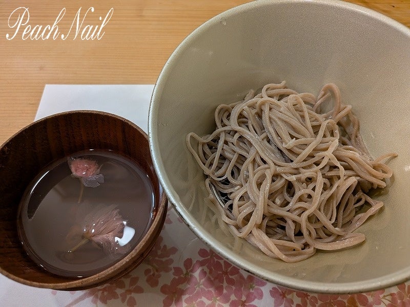 ハマグリ出汁のそばつゆ に 桜を練り込んだ さくらそば